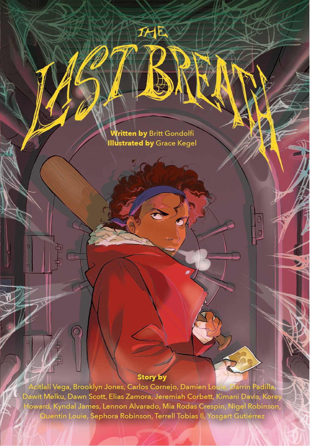 The single story the 20 Urban Ed Academy kids landed on was about parents who hid their kid, Elias, into a high-tech bunker to save him during an alien invasion. Problem is, he’s stuck down there with a mutant spider who may be a nemesis. With oxygen running low, Elias and the Spider will have to decide if they’ll keep fighting or help each other escape into a world they can’t be sure is safe. Professional author Britt Gondolfi and illustrator Grace Kegel leveraged the story the kids created and developed it into the comic you see here.