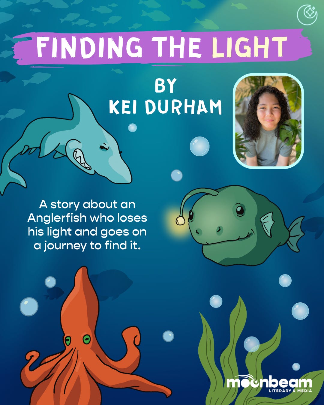 We’re excited to announce that 10-year-old Kei Durham from Columbus, Ohio, is the winner of Moonbeam’s 2025 Kids Create a Cartoon contest! His imaginative story, Finding the Light, follows an anglerfish who loses his glow and embarks on an undersea journey to reclaim it. Kei developed his story in one of our workshops led by Moonbeam client, author Tracy Blom, hosted in partnership with Center of Science and Industry (COSI), Columbus Metropolitan Library, and The Wave Foundation at Newport Aquarium.